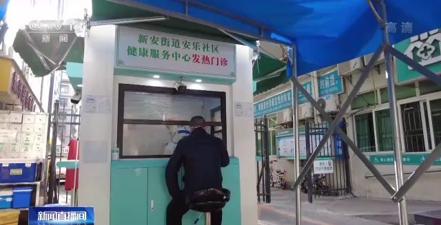 廣東深圳寶安區(qū)新安街道安樂社區(qū)健康服務(wù)中心門口,醫(yī)生在為居民診療。停用的核酸采樣艙經(jīng)過改造后,已變身為發(fā)熱門診。發(fā)熱門診內(nèi)配有電腦、醫(yī)保刷卡機(jī)、制氧機(jī)、必備藥品等,全科醫(yī)生輪流坐診,患者來到這里后,從接受診療、開方、繳費(fèi)、配藥全過程最快5分鐘就可完成。