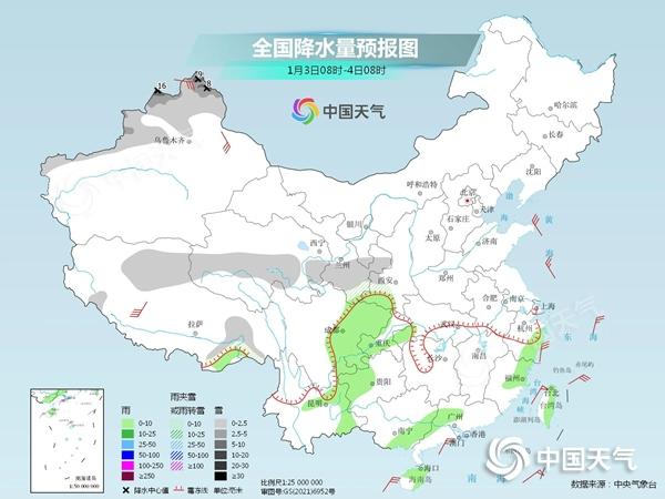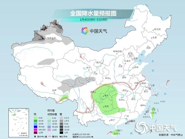 今起三天,我國降水區(qū)域仍將集中在西南地區(qū),新疆等部分地區(qū)降雪也比較頻繁。其中今天,新疆北部、西藏東南部、青海中部、甘肅南部、陜西西南部等地部分地區(qū)有小到中雪或雨夾雪,其中,新疆北疆北部等高海拔地區(qū)有大到暴雪(10~16毫米)。四川盆地、重慶西部、貴州中西部、云南東部、海南島、臺灣島等地部分地區(qū)有小雨。