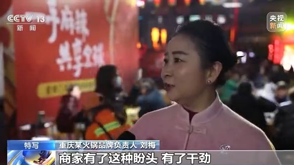 重慶市商務(wù)委員會(huì)服務(wù)業(yè)發(fā)展處副處長(zhǎng) 張毓益:這一周來看,還是有一點(diǎn)點(diǎn)超出我們的預(yù)期,這也和我們重慶人喜歡熱鬧,喜歡大家出來聚會(huì)這種性格有關(guān)系。這一點(diǎn)也是讓我們看到了迅速走出前段時(shí)間的經(jīng)營困境非常好的一個(gè)利好信號(hào)。