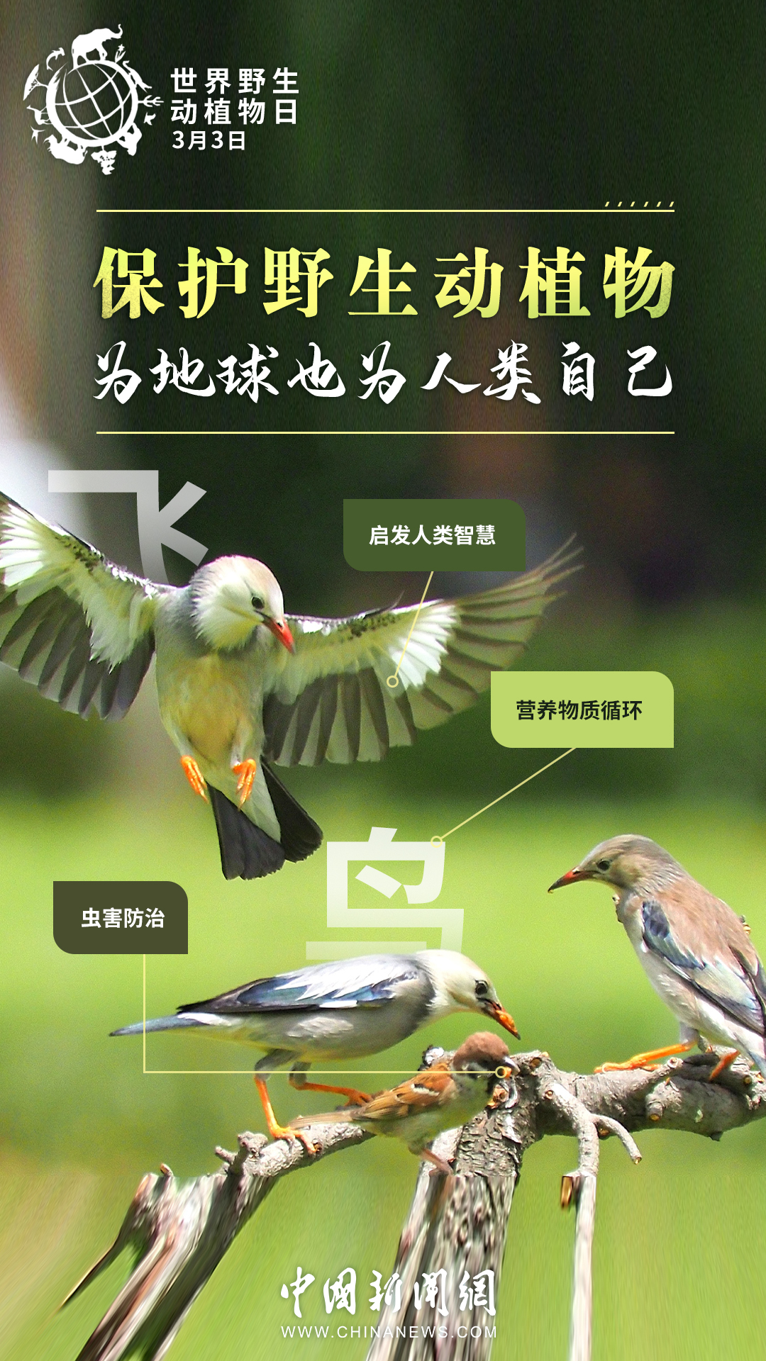 世界約80%的農(nóng)作物都依賴蜜蜂等蟲媒傳粉,一座鯨的尸體可以供養(yǎng)一套以分解者為主的循環(huán)系統(tǒng)長(zhǎng)達(dá)百年……其實(shí),大自然里的每種生物都有它存在的價(jià)值。今天是第十個(gè)“世界野生動(dòng)植物日”,戳圖了解它們的作用,一起來(lái)保護(hù)野生動(dòng)植物。