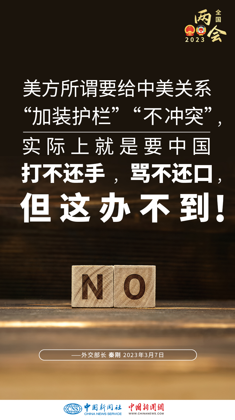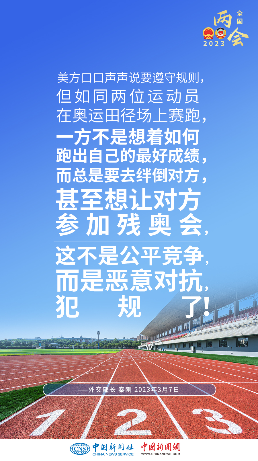 秦剛:美方聲稱(chēng)要“競(jìng)贏”中國(guó)但不尋求沖突。但實(shí)際上,美方的所謂“競(jìng)爭(zhēng)”,就是全方位遏制打壓,就是你死我活的零和博弈。美方口口聲聲說(shuō)要遵守規(guī)則,但如同兩位運(yùn)動(dòng)員在奧運(yùn)田徑場(chǎng)上賽跑,一方不是想著如何跑出自己的最好成績(jī),而總是要去絆倒對(duì)方,甚至想讓對(duì)方參加殘奧會(huì),這不是公平競(jìng)爭(zhēng),而是惡意對(duì)抗,犯規(guī)了!美方所謂要給中美關(guān)系“加裝護(hù)欄”“不沖突”,實(shí)際上就是要中國(guó)打不還手,罵不還口,但這辦不到!