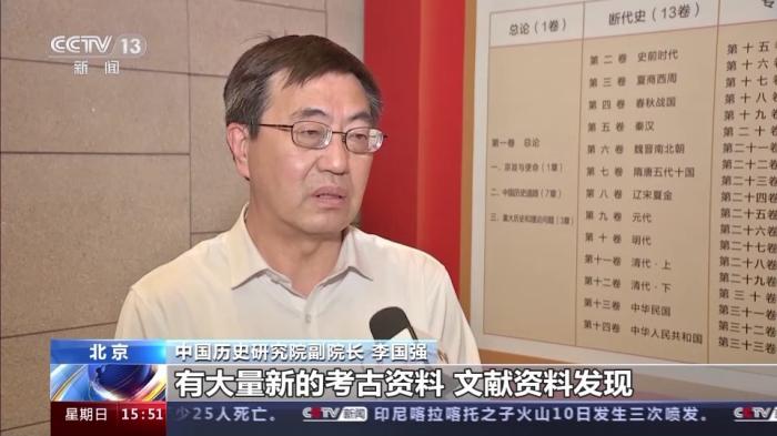 中國歷史研究院副院長 李國強:那么距離今天我們前一部通史已經(jīng)過去20多年,在20多年的時間里邊,有大量新的考古資料、文獻資料發(fā)現(xiàn),那么需要以新的史料、新的理論、新的方法來觀察中國歷史。《(新編)中國通史》跨時代跨度非常長,一直從史前時期,寫到黨的二十大,這樣一個時間跨度,在過去的通史編纂當中是前所未有的。同時我們《(新編)中國通史》也采取了斷代史與專門史相結合的這樣一個全新體例,這在以往也是前所未有的。