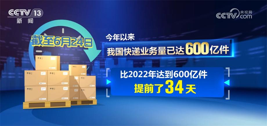 國家郵政局數(shù)據(jù)顯示,截至6月24日,今年以來我國快遞業(yè)務(wù)量已達600億件,比2022年達到600億件提前了34天。