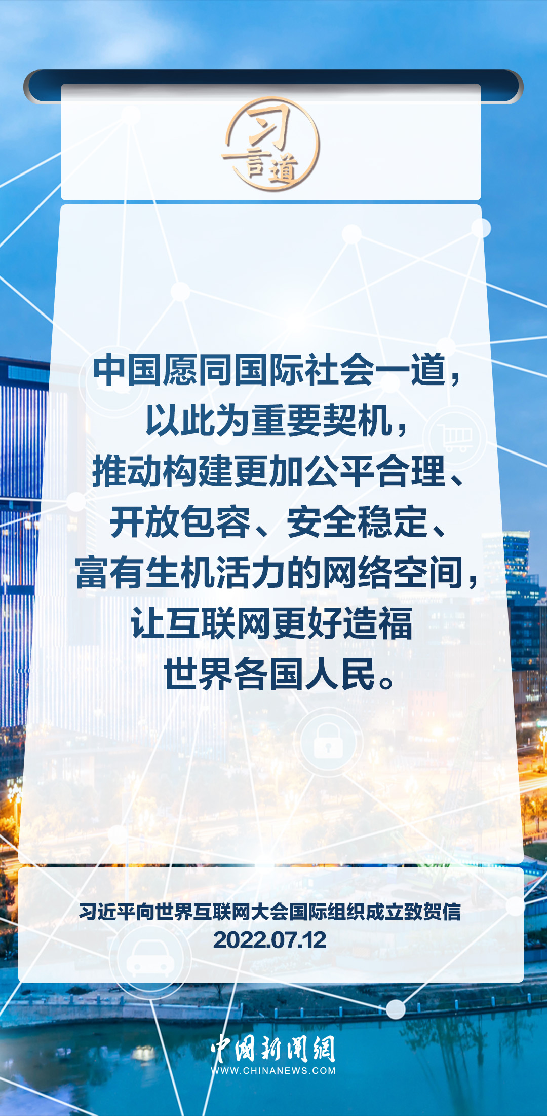 網(wǎng)絡(luò)空間關(guān)乎人類命運(yùn),網(wǎng)絡(luò)空間未來應(yīng)由世界各國共同開創(chuàng)。習(xí)近平總書記高度重視全球網(wǎng)絡(luò)空間治理,多次作出重要論述,強(qiáng)調(diào)讓互聯(lián)網(wǎng)更好造福世界各國人民。