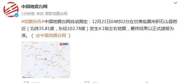 甘肅臨夏州積石山縣附近發(fā)生4.1級左右地震