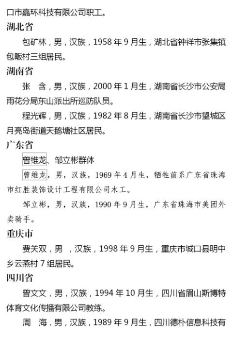 2023年第四季度見義勇為勇士榜名單 來源:中央政法委長安劍微信公眾號