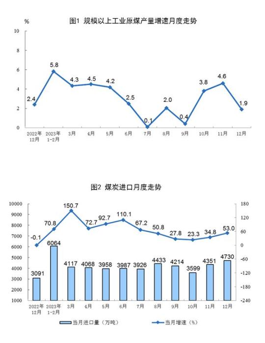 2023年,規(guī)上工業(yè)原煤產(chǎn)量46.6億噸,同比增長2.9%。進(jìn)口煤炭4.7億噸,同比增長61.8%。