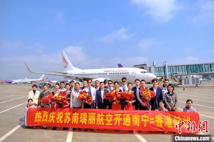 2月19日,南寧—香港航線恢復(fù)定期運(yùn)營(yíng)。南寧機(jī)場(chǎng)供圖