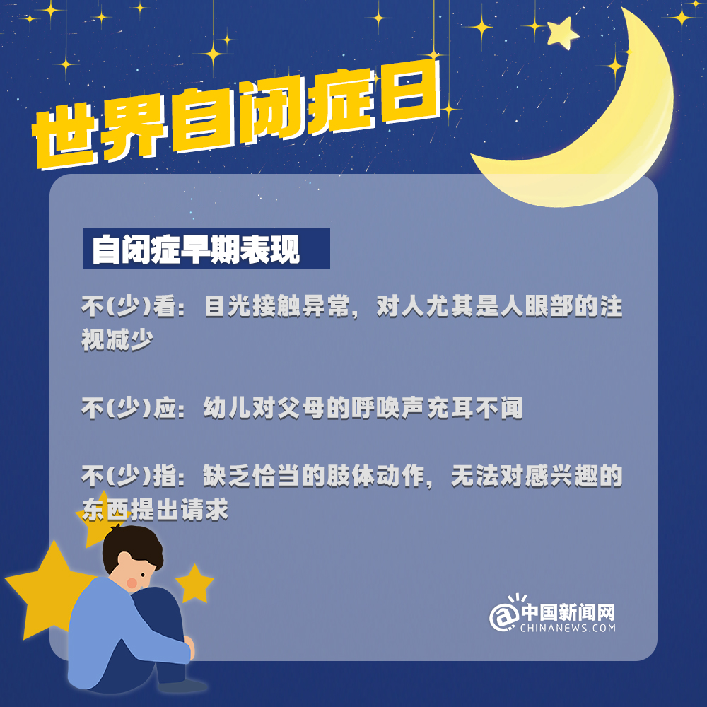 中新網(wǎng)4月2日電 自閉癥兒童,也被稱為“來(lái)自星星的孩子”,他們的情緒難以捉摸,他們的思想難以表達(dá),他們像星星一樣孤獨(dú)地游離在宇宙中……有數(shù)據(jù)顯示:目前中國(guó)自閉癥患者已超1300萬(wàn)人。自閉癥有哪些認(rèn)知誤區(qū)?該如何早期識(shí)別自閉癥?詳情↓關(guān)愛(ài)自閉癥患者,讓星星的孩子有愛(ài)不孤單!