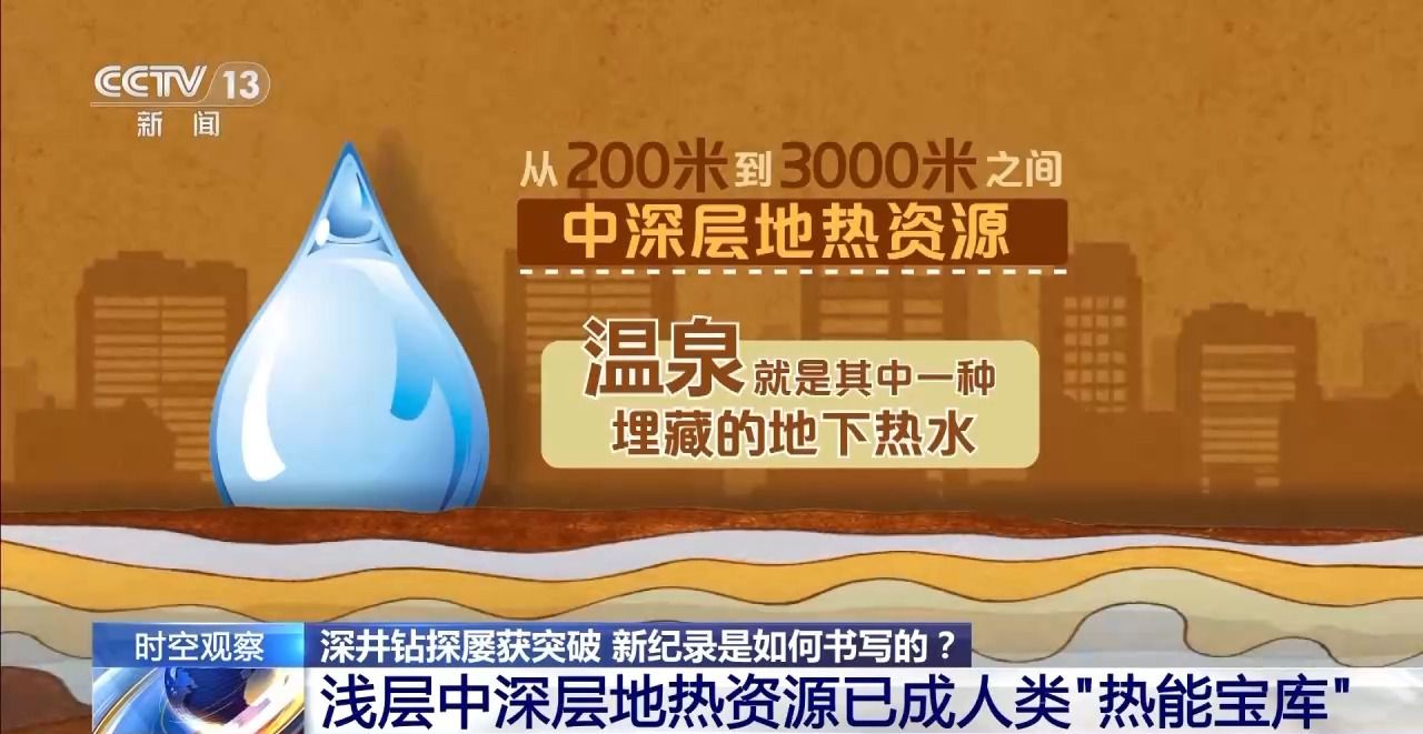 從地面鉆井,到地下200米以內(nèi),一般就是淺層地?zé)豳Y源,溫度低于25℃,它們的特點(diǎn)是溫度全年保持穩(wěn)定,可以利用地表與室外空氣溫差,在冬季為室內(nèi)供暖、夏季供冷。從200米繼續(xù)往下,到3千米之間,是中深層地?zé)豳Y源,埋藏的地下熱水也就是我們熟知的溫泉,就是其中一種。
