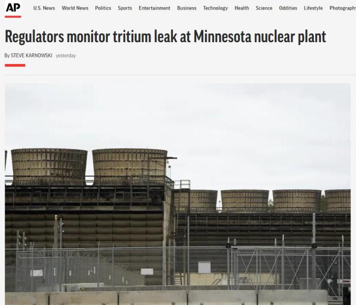 美媒:美國(guó)明尼蘇達(dá)州一核電站40萬(wàn)加侖放射性水泄漏