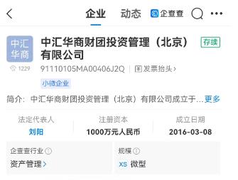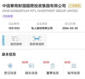中新財經(jīng)還以“華商財團”為關鍵詞通過企查查APP進行搜索,出現(xiàn)“中匯華商財團投資管理(北京)有限公司”、“中信華商財團國際投資集團有限公司”兩項最為相關的結果。前者為注冊資本1000萬元人民幣的小微企業(yè),后者則被標注“已告解散”。