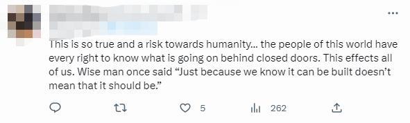 在網(wǎng)絡上,這封信也引起熱烈討論,有網(wǎng)友表示認同,人們需要知道發(fā)生了什么,“僅僅因為我們知道可以建造它,并不意味著應該建造”。