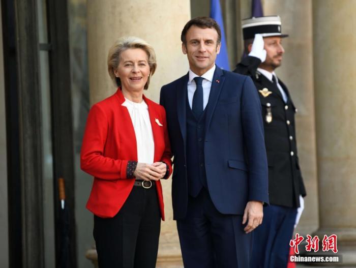 資料圖:法國總統(tǒng)馬克龍與歐盟委員會(huì)主席馮德萊恩。中新社記者 李洋 攝