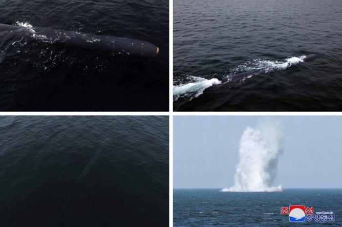據(jù)報道,4月4日下午,朝鮮核無人潛水攻擊艇“海嘯—2”型在咸鏡南道金野郡加津港投入試驗(yàn),沿著在朝鮮東海設(shè)定的模擬1000公里距離的橢圓及八字形航線潛航71小時6分,4月7日下午到達(dá)咸鏡南道端川市龍臺港前海預(yù)定目標(biāo)水域,試驗(yàn)用戰(zhàn)斗部在水下成功爆炸。