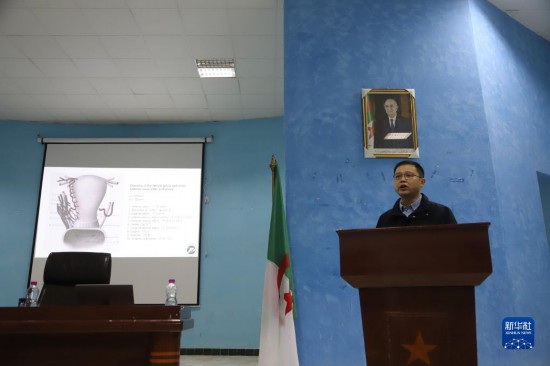 今年以來,援阿醫(yī)療隊塞提夫分隊負責(zé)人朱濤定期為當(dāng)?shù)刈≡横t(yī)生和醫(yī)學(xué)院學(xué)生舉辦學(xué)術(shù)講座?!爸v座目的是把我掌握的先進理念和技術(shù)傳遞給他們,在‘授人以魚’的同時‘授人以漁’,真正為阿爾及利亞留下一支‘帶不走的醫(yī)療隊’。”