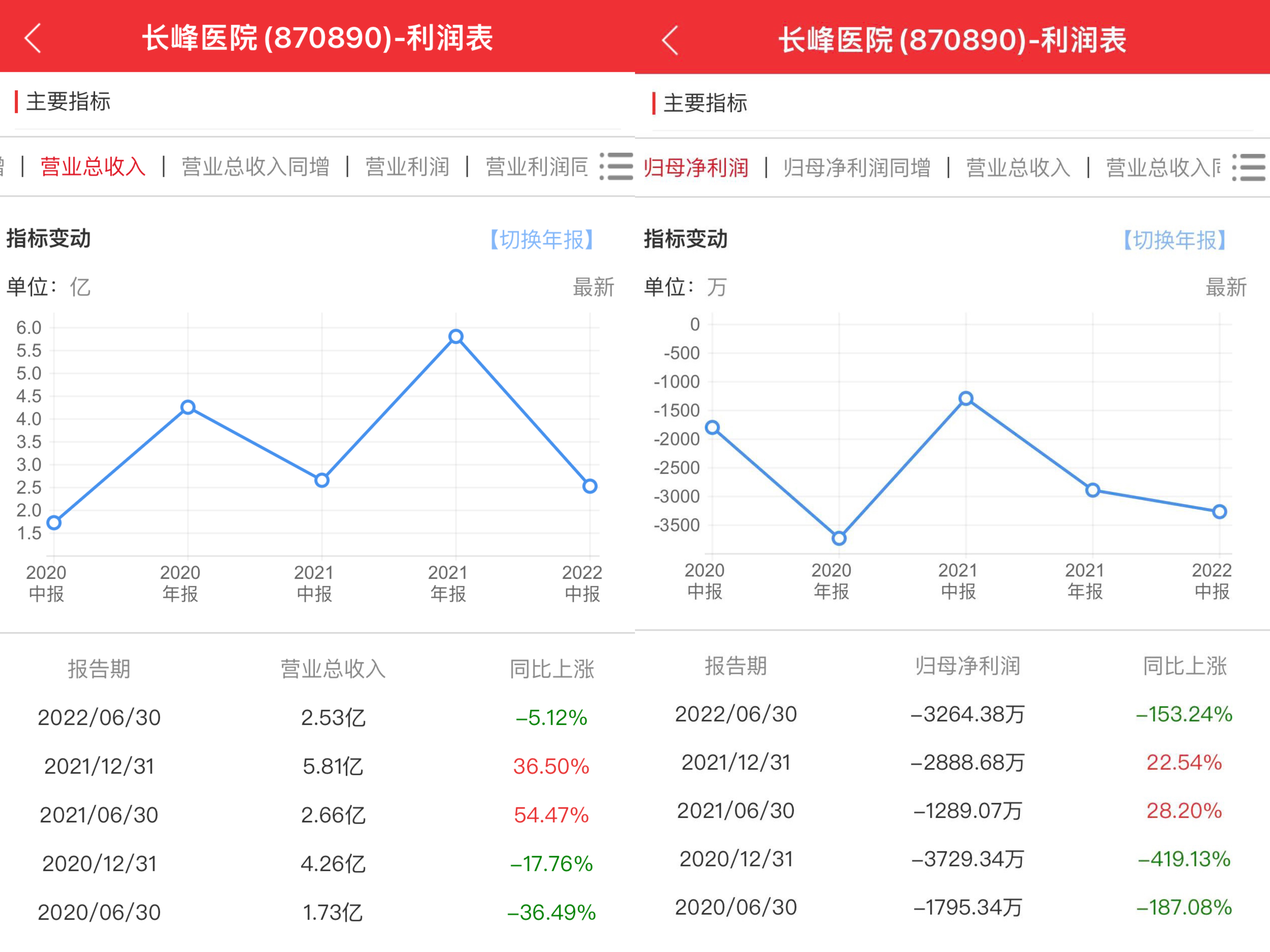 但其實(shí),目前長(zhǎng)峰醫(yī)院的經(jīng)營(yíng)情況不容樂觀。自2019年起,長(zhǎng)峰醫(yī)院經(jīng)營(yíng)便出現(xiàn)了異常,并自2020年起陷入持續(xù)虧損。2020年長(zhǎng)峰醫(yī)院歸母凈虧損為3729.34萬元,2021年雖實(shí)現(xiàn)了營(yíng)收的回升,但報(bào)告期內(nèi)歸母凈虧損仍為2888.68萬元。