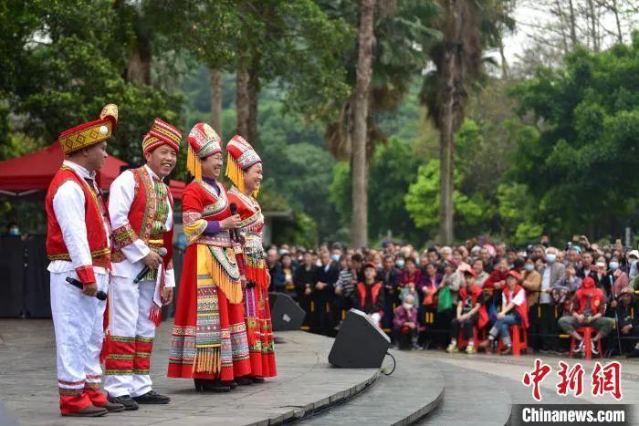 壯族民眾身著民族服飾賽山歌。黃艷梅 攝