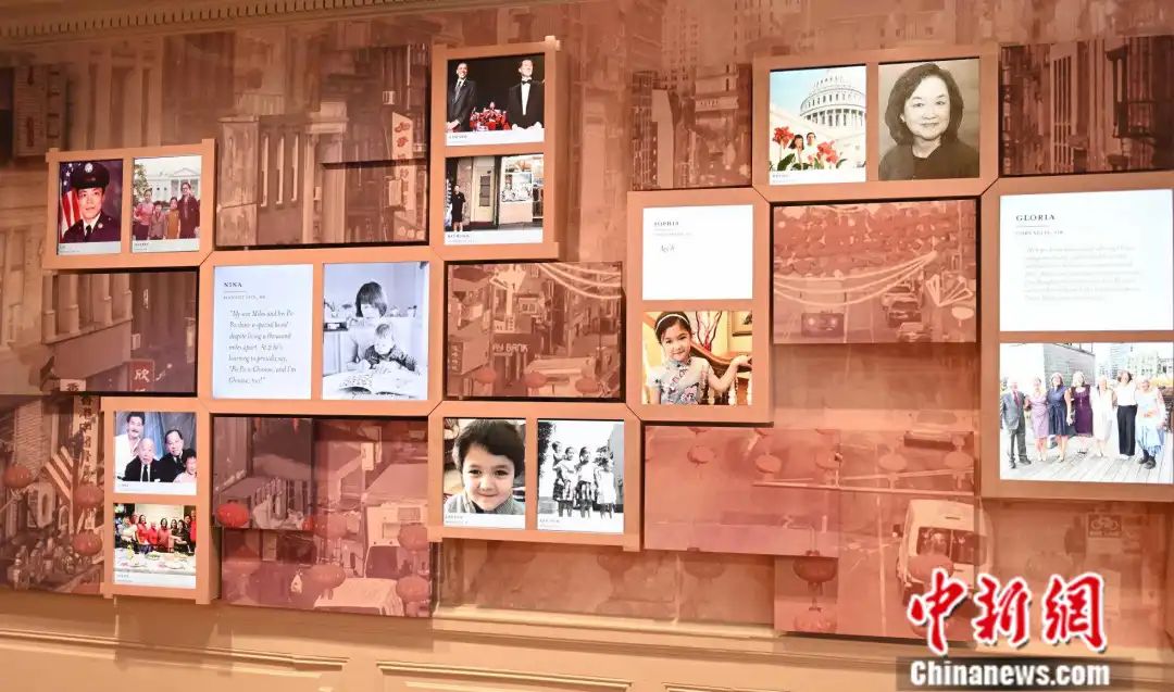 華盛頓美國(guó)華人博物館內(nèi)的美國(guó)華人數(shù)字照片墻。陳孟統(tǒng)攝