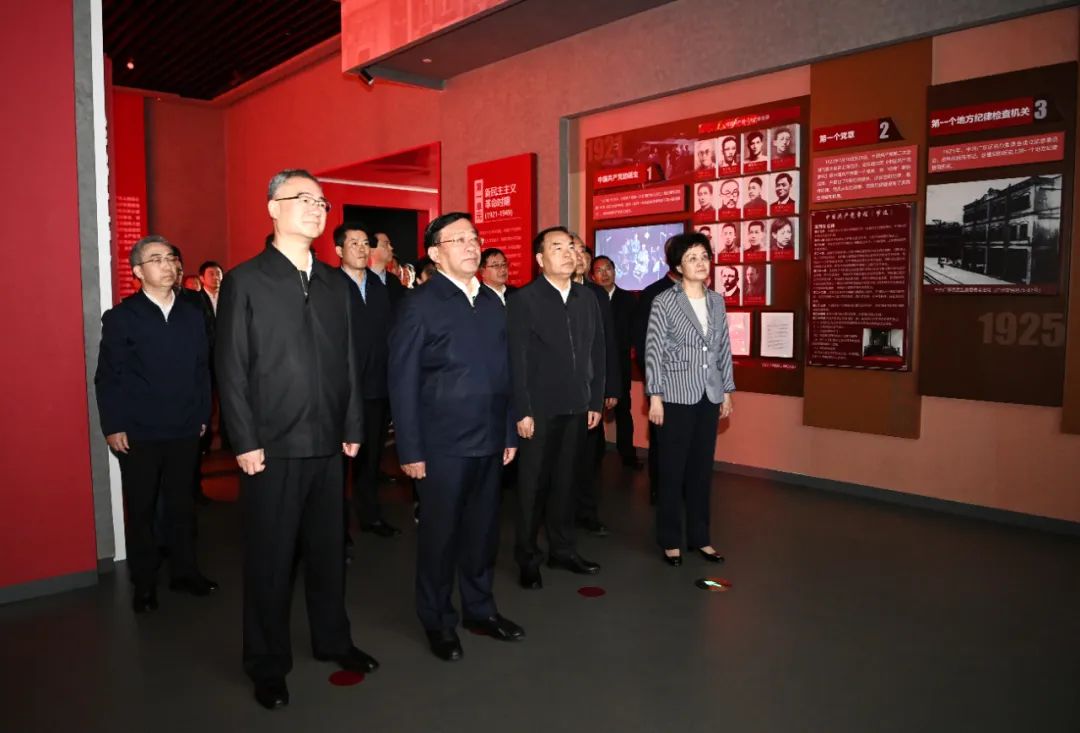 根據(jù)報道,韓俊等首先來到序廳,認真觀看專題片《永遠在路上》。隨后,韓俊等依次參觀“紀律立黨·從嚴治黨”“廉潤江淮·清風(fēng)揚帆”“以案為鑒·警鐘長鳴”“不忘初心·永葆清廉”四個展廳。