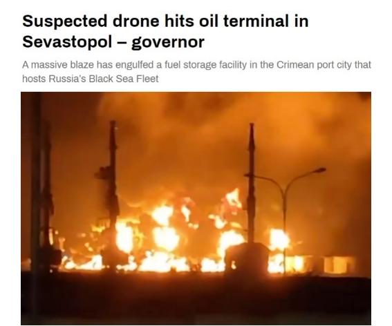 中新網(wǎng)4月29日電 據(jù)“今日俄羅斯”(RT)報(bào)道,當(dāng)?shù)貢r(shí)間29日凌晨,俄羅斯海軍黑海艦隊(duì)所在地,克里米亞半島的塞瓦斯托波爾市的一個(gè)儲(chǔ)油設(shè)施遭到無人機(jī)襲擊。據(jù)目擊者分享的視頻,襲擊導(dǎo)致儲(chǔ)油設(shè)施燃起大火,照亮了夜空,隨后該市上空籠罩著一大團(tuán)黑煙。