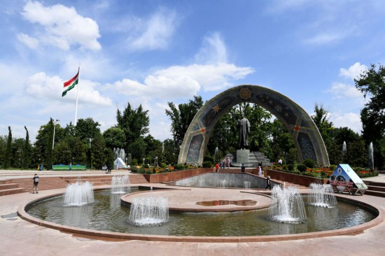 ↑塔吉克斯坦首都杜尚別的魯達(dá)基公園。