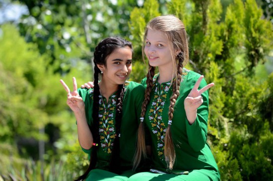 ↑土庫曼斯坦首都阿什哈巴德街頭的當(dāng)?shù)嘏ⅰ?/p>