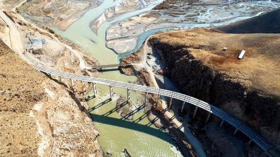 這是2020年10月27日在吉爾吉斯斯坦拍攝的新北南公路二期工程施工現(xiàn)場(chǎng)。新華社發(fā)