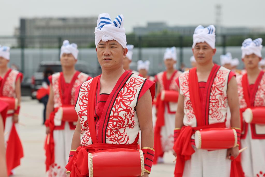 據(jù)悉,表演團隊包括50名陜北腰鼓表演者、48名陜北秧歌表演者、20名現(xiàn)場演奏的樂手和72名手捧鮮花列隊歡迎的少年兒童。腰鼓和秧歌表演者是來自陜西北部榆林市的民間藝人和群眾文化工作者,少年兒童來自西安市的三所小學?,F(xiàn)場音樂選用了帶有民間音樂元素的《春節(jié)序曲》的一部分。