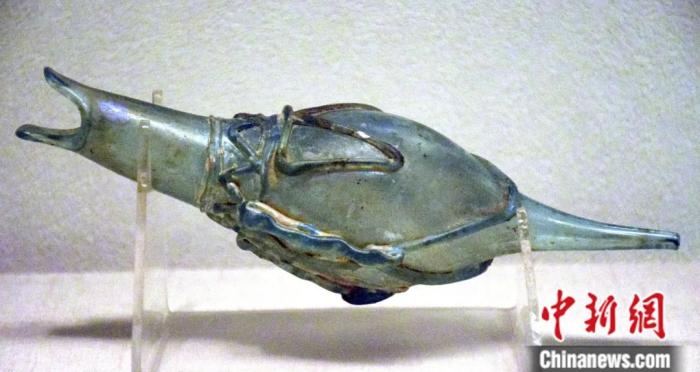 藏于遼寧省博物館的鴨形玻璃注。楊興斌 攝