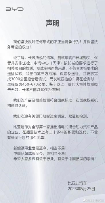 比亞迪隨后回應(yīng)稱,堅(jiān)決反對(duì)任何形式的不正當(dāng)競(jìng)爭(zhēng)行為,并保留法務(wù)訴訟的權(quán)利。公司的產(chǎn)品及相關(guān)檢測(cè)符合國家標(biāo)準(zhǔn),在國家權(quán)威機(jī)構(gòu)通過認(rèn)證。