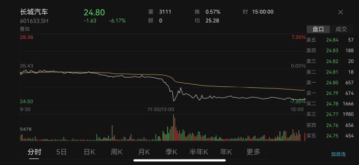 長(zhǎng)城汽車股價(jià)走勢(shì)。