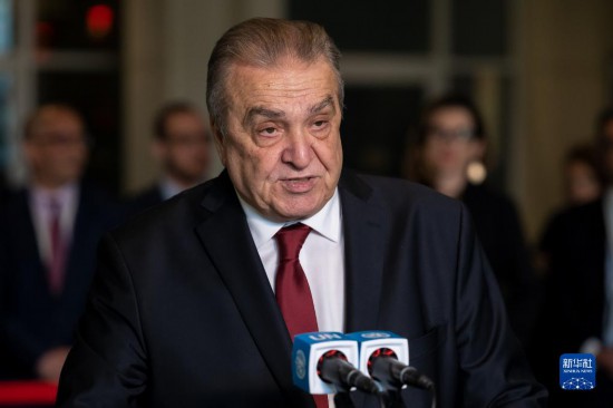 6月6日,在位于紐約的聯(lián)合國(guó)總部,阿爾及利亞常駐聯(lián)合國(guó)代表阿馬爾·本賈瑪在阿爾及利亞當(dāng)選聯(lián)合國(guó)安理會(huì)非常任理事國(guó)后在記者見面會(huì)上講話。新華社發(fā)(聯(lián)合國(guó)供圖/洛伊·費(fèi)利佩攝)