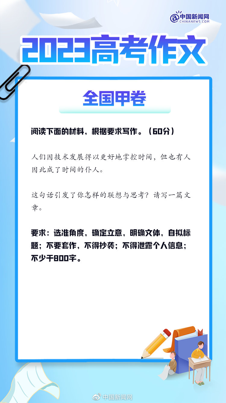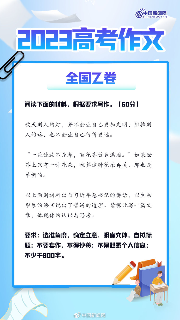據教育部新聞辦官方微信7日消息,2023年高考全國卷語文作文題出爐,具體如下: