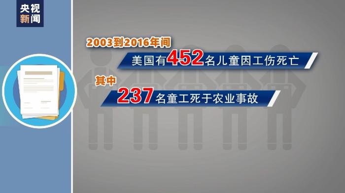 農(nóng)業(yè)領域是美國雇傭童工的重災區(qū)之一。據(jù)美國非營利組織“農(nóng)場工人就業(yè)項目聯(lián)合會”提供的數(shù)據(jù),美國仍有50萬至80萬名童工在農(nóng)場工作。農(nóng)場勞作繁重、條件艱苦,童工還常被置于因天氣、農(nóng)藥及使用農(nóng)具農(nóng)機所產(chǎn)生的危險中?!度A盛頓郵報》報道,2003年至2016年間,美國有452名兒童因工傷死亡,其中237名童工死于農(nóng)業(yè)事故。