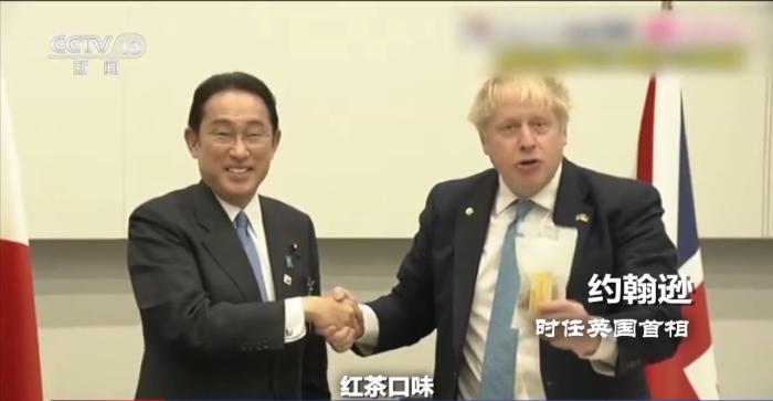 時(shí)任英國首相約翰遜:福島小餅干,謝謝。紅茶口味,這是紅茶口味對(duì)吧?