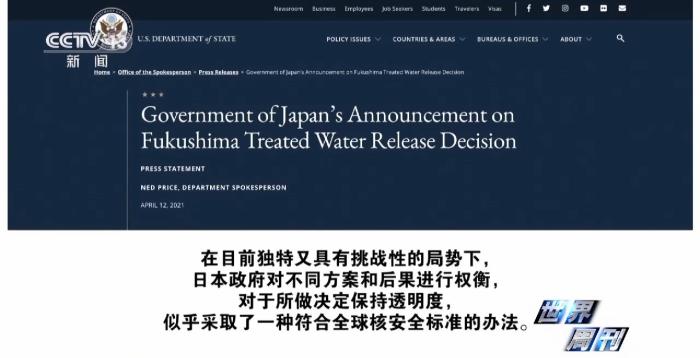 而就在日本政府公布排海計(jì)劃的前一天,2021年4月12日,美國國務(wù)院在官網(wǎng)發(fā)表一份相關(guān)聲明,措辭可謂用心良苦: