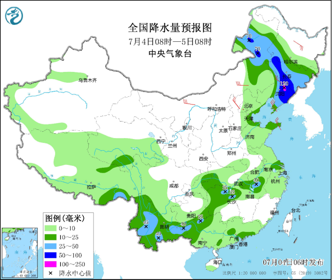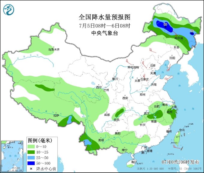 中新網(wǎng)7月4日電 據(jù)中央氣象臺網(wǎng)站消息,中央氣象臺今晨繼續(xù)發(fā)布暴雨藍(lán)色預(yù)警:預(yù)計(jì)今明兩天,東北地區(qū)及內(nèi)蒙古東北部將成強(qiáng)降雨主陣地,其中今天白天至夜間,內(nèi)蒙古東北部、黑龍江西南部、吉林、遼寧中東部等地部分地區(qū)有大到暴雨,遼寧東北部等局地有大暴雨(100~120毫米);上述部分地區(qū)伴有短時(shí)強(qiáng)降水(最大小時(shí)降雨量20~50毫米,局地可超過60毫米),局地有雷暴大風(fēng)等強(qiáng)對流天氣。明天,內(nèi)蒙古東北部、黑龍江大部、吉林北部有中到大雨,局地暴雨。受強(qiáng)降雨影響,內(nèi)蒙古東北部、東北部分地區(qū)等地有暴雨災(zāi)害中高風(fēng)險(xiǎn),關(guān)注局地可能發(fā)生的山洪、地質(zhì)災(zāi)害和城鄉(xiāng)積澇,并防范強(qiáng)對流天氣的危害。