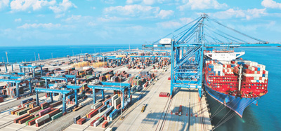 阿聯(lián)酋正致力于成為全球物流中心。圖為近日,該國哈利法港一片繁忙景象。