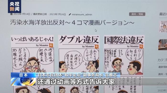 日本市民團(tuán)體“和平論壇”副事務(wù)局長(zhǎng)谷雅志:我們網(wǎng)站首先發(fā)布當(dāng)?shù)貪O民反對(duì)核污染水排海的內(nèi)容,還通過動(dòng)畫等方式告訴大家核污染水排海所存在的問題。希望能讓更多人關(guān)注核污染水排海問題,了解可能造成的負(fù)面影響。