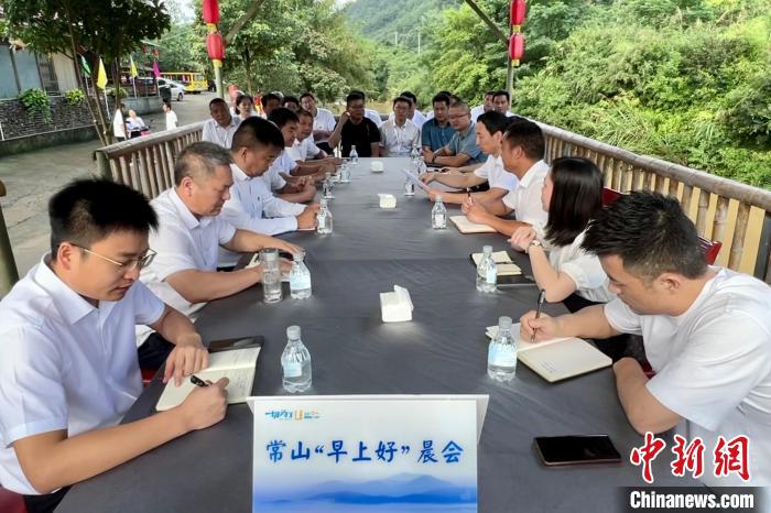 中新網(wǎng)衢州7月23日電(董易鑫)“早上好!”7月23日,清晨的陽光灑在浙江省衢州市常山縣田蓬村溪邊一方由竹子搭建的平臺——該縣幾位村書記站在這里,向從不遠(yuǎn)處走來的客人們道一聲中氣十足的問候。
