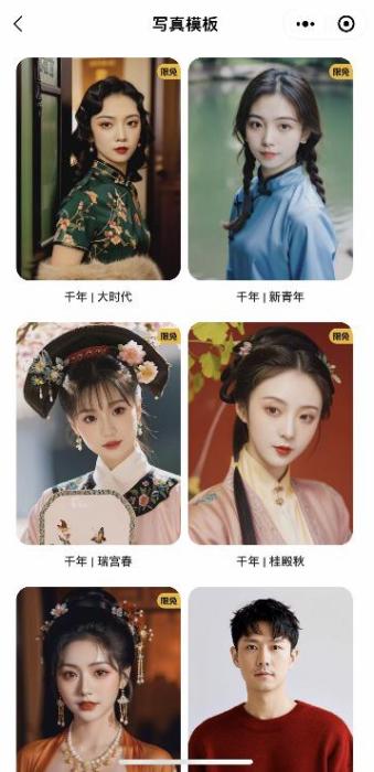 妙鴨相機(jī)提供的寫(xiě)真模板。 截圖自妙鴨相機(jī)小程序。