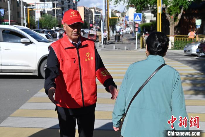 圖為彭措在共和縣城當志愿者。武俊杰 攝