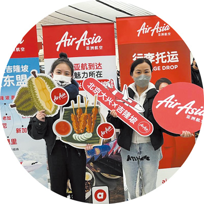 在馬來西亞吉隆坡國際機場,工作人員歡迎中國游客。