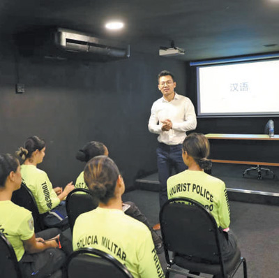 為更好地保障中國游客安全,里約旅游警察局和中國駐里約總領事館合作推出的里約旅游警察中文培訓班日前正式開班。該培訓班分為10個課時,由里約天主教大學孔子學院的教師授課。當?shù)鼐瘑T丹妮爾·克雷斯說,中國游客將為推動里約經(jīng)濟發(fā)展發(fā)揮重要作用,“我愿與同事一起為保障游客安全、促進巴中人民友好往來貢獻力量。”
