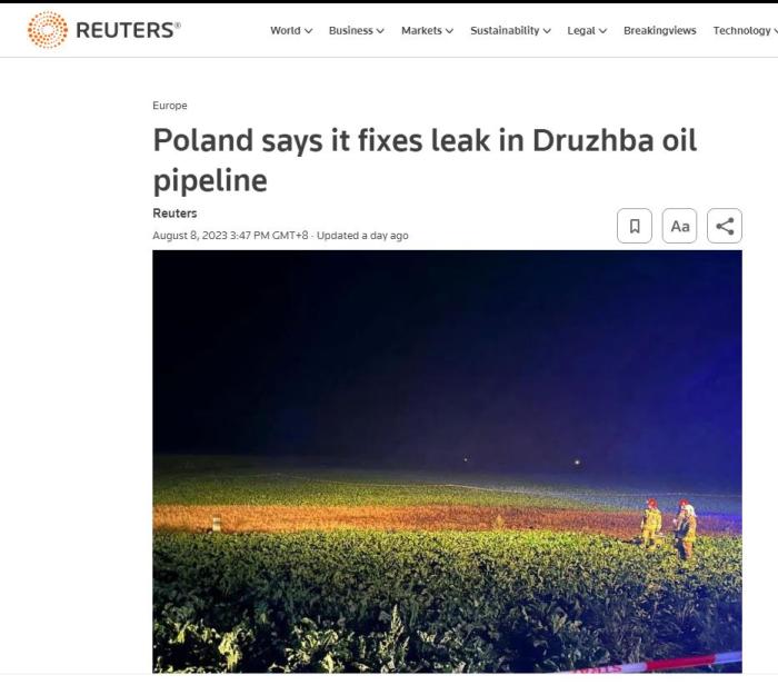 中新網8月8日電 據路透社報道,當?shù)貢r間8日,波蘭石油管道運營商PERN稱已修復德魯日巴輸油管道,恢復正常運營。