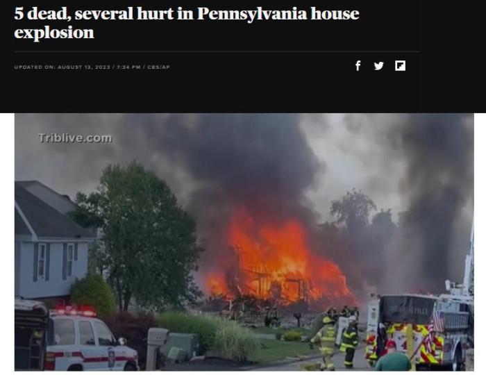 中新網(wǎng)8月14日電 據(jù)外媒報道,當?shù)貢r間12日,美國賓夕法尼亞州匹茲堡附近城鎮(zhèn)普拉姆發(fā)生房屋爆炸。警方表示,這起事故已造成5人死亡、3人受傷,多座建筑物受損。
