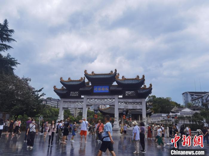 8月1日,來(lái)自中國(guó)各地的游客在貴陽(yáng)市甲秀樓參觀(guān)游覽。周燕玲攝