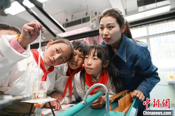 5月18日,四川阿壩州壤塘縣寄宿制學(xué)校學(xué)生在科學(xué)課做實(shí)驗(yàn)。 中新社記者 安源 攝