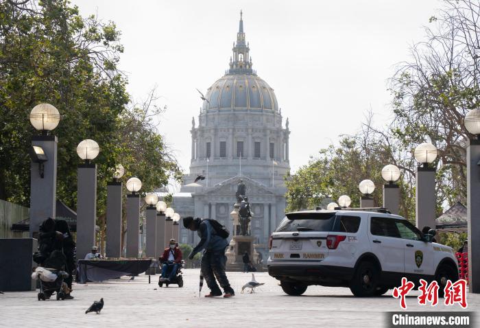 當(dāng)?shù)貢r(shí)間8月19日,無家可歸者從美國舊金山市政廳附近經(jīng)過。中新社記者 劉關(guān)關(guān) 攝